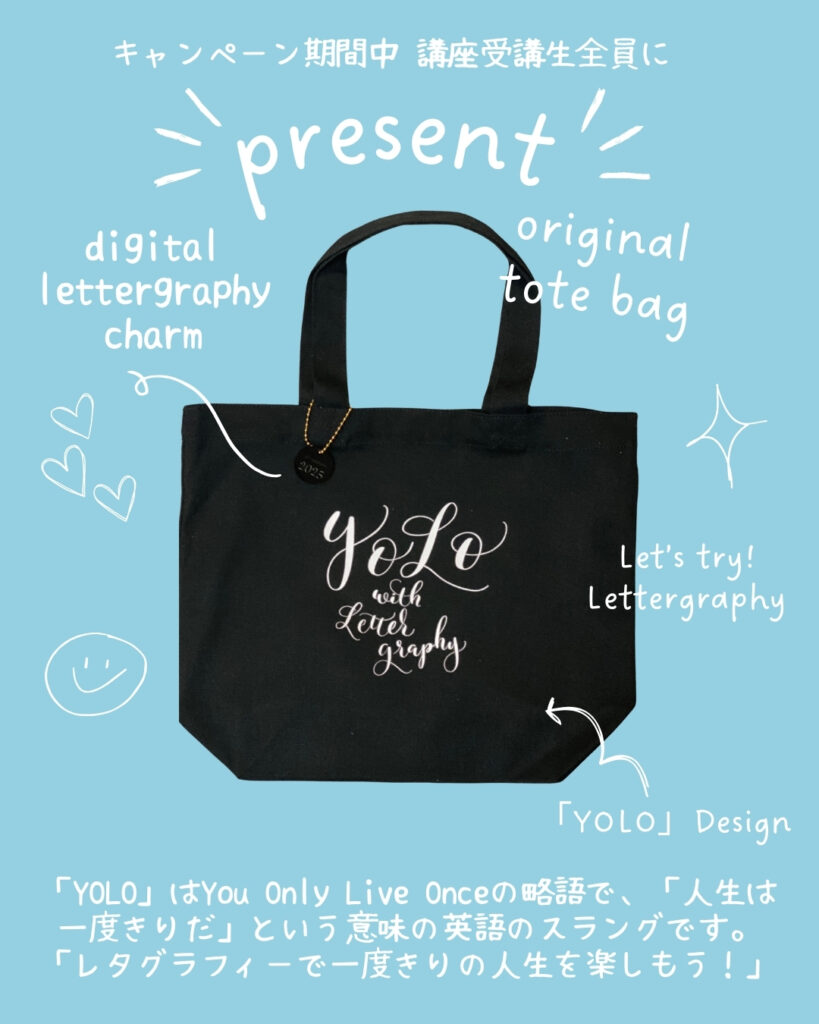 レタグラフィーオリジナルトートバッグをプレゼント中です!詳細は体験会時に先生にお尋ねください♪