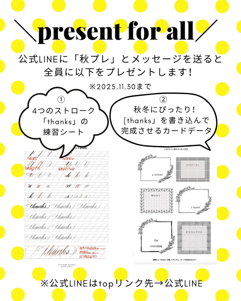 2025年10月15日〜11月30日迄に、レタグラフィーの講座をお申し込みくださったかた全員に