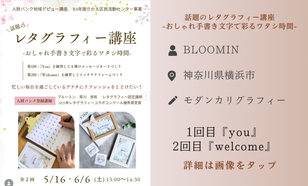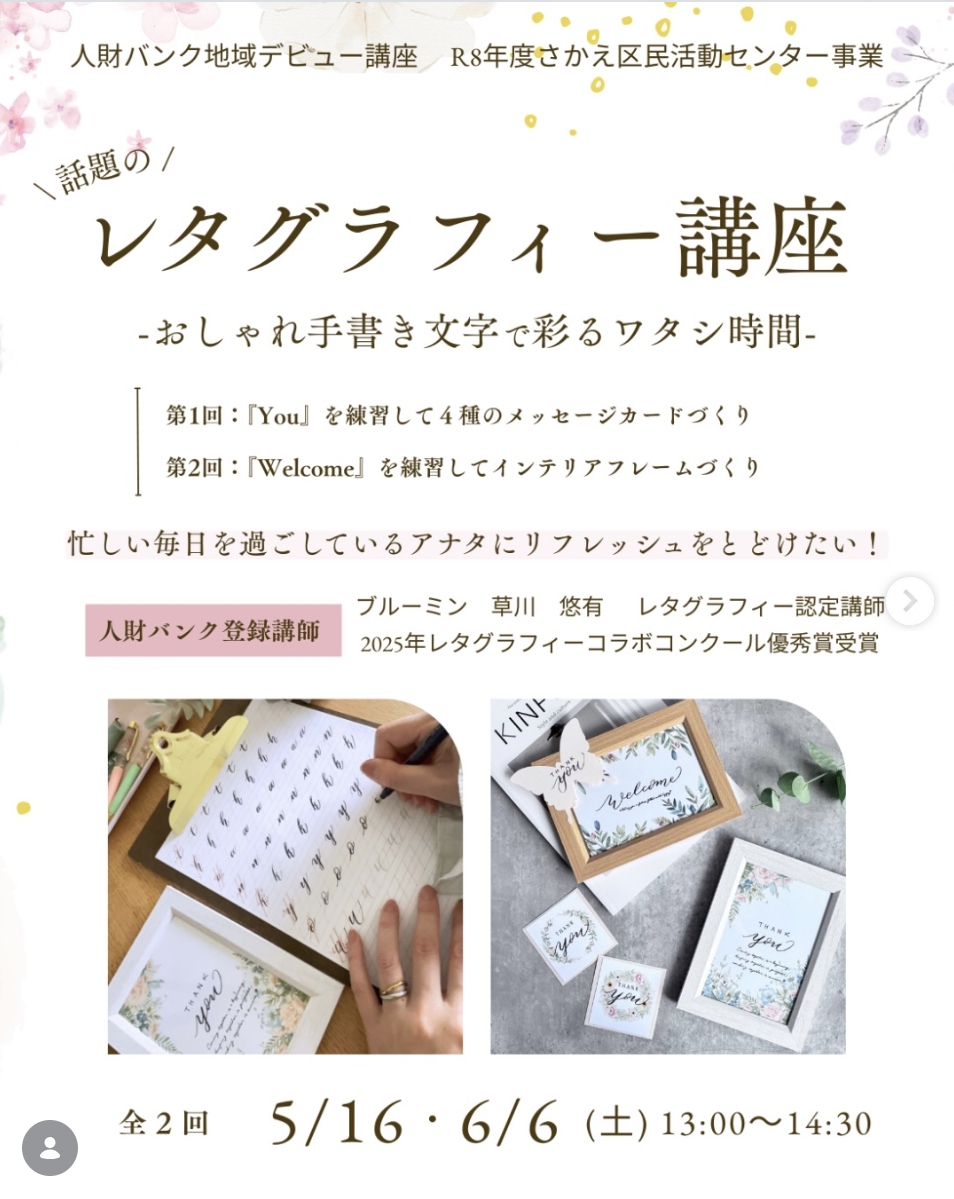 今回は”春特集”として、4月5月に開催されるおすすめのレタグラフィーレッスンをご紹介します。