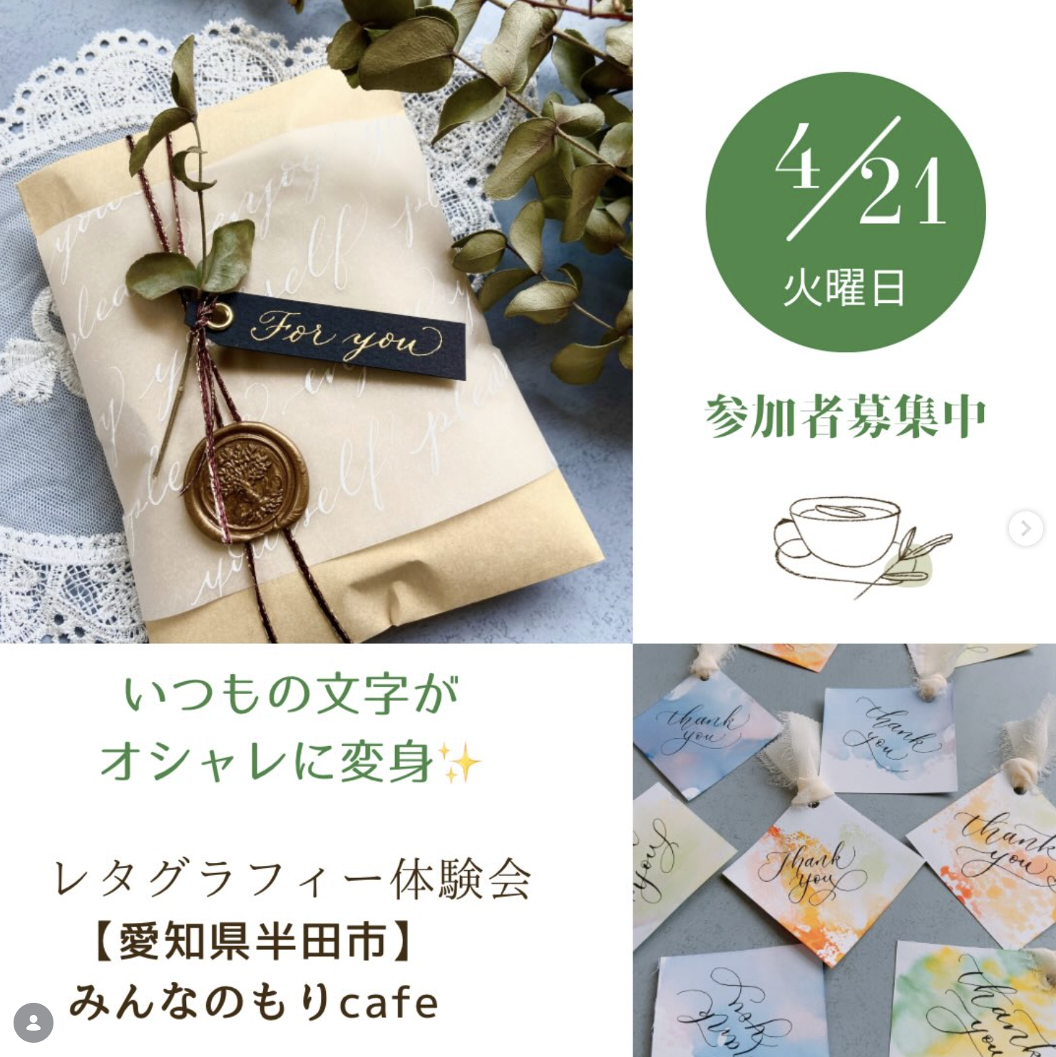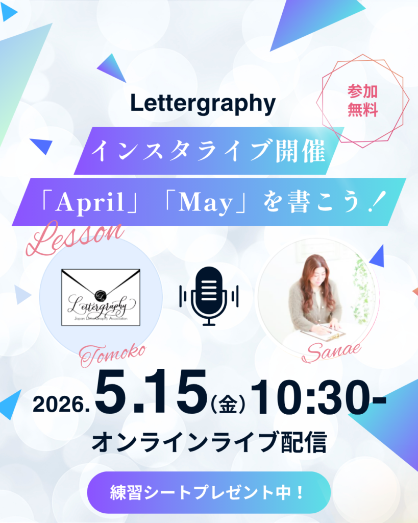4月5月の二日間、レタグラフィー協会理事&現役人気講師と一緒に書くインスタライブを開催します!どなたでも無料で参加できるので、ぜひお気軽にご参加ください🎵