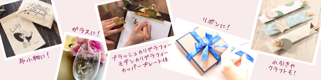 –レタグラフィー認定講座では紙だけでなく様々な素材に書いたり、文字と合わせるクラフトも学べます–
