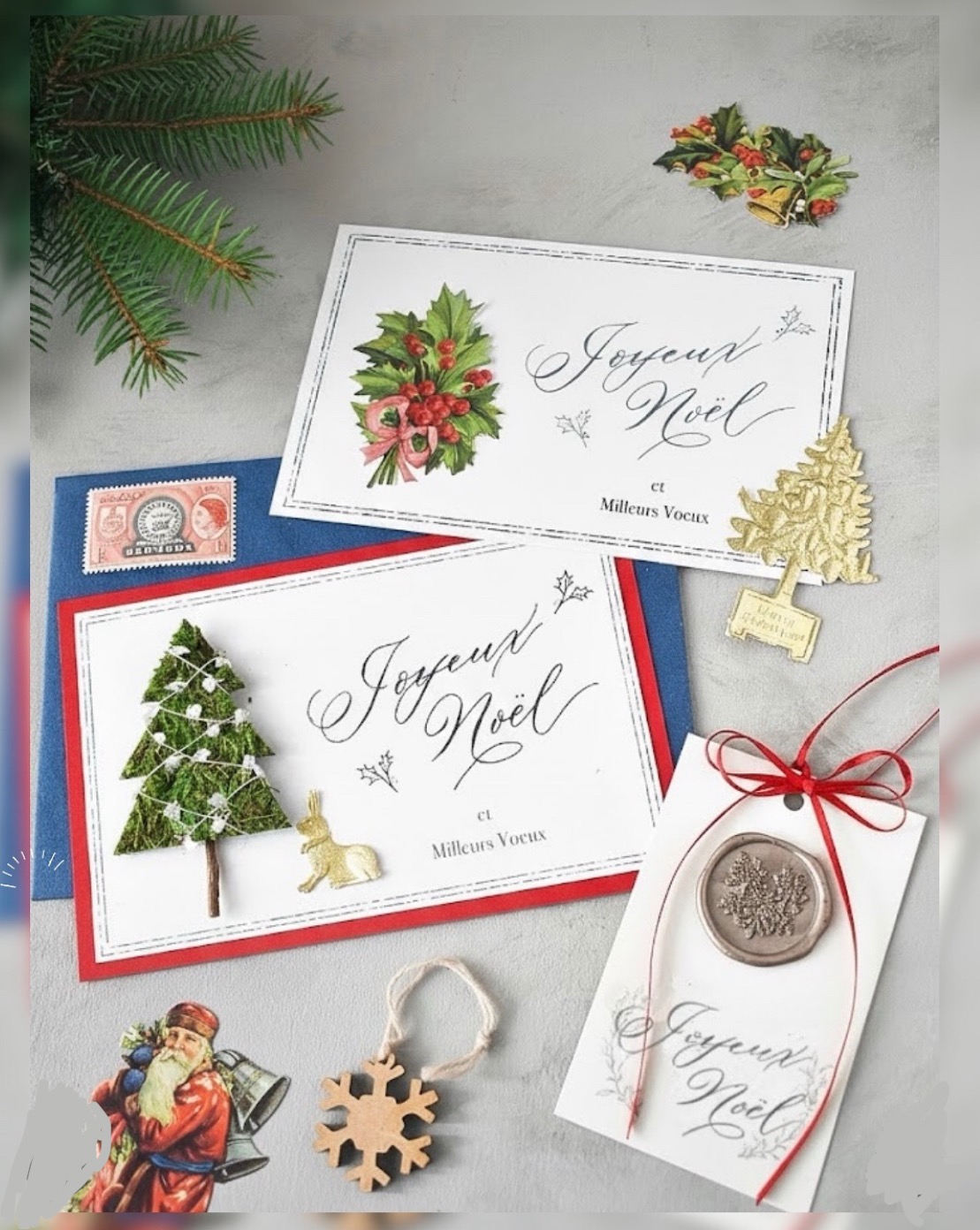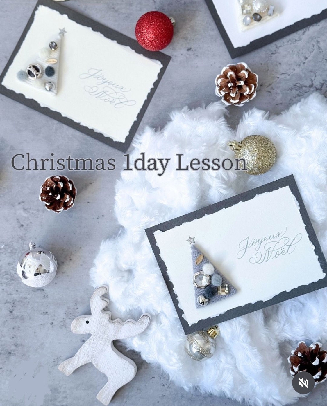 「Joyeux Noel」の文字を学びクリスマスカードとタグ作り!