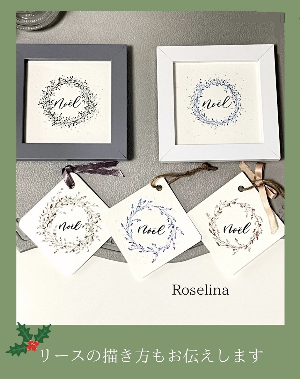 「Noel」の文字とリースの描き方を学んでインテリアフレームと